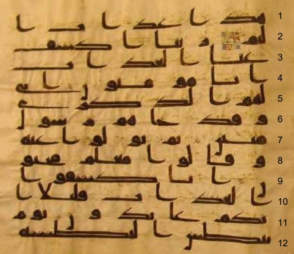 Örnek bir mushaf. Kahire mushafı. Görüldüğü üzere noktalama ve harekeleme yoktur. Hemze de içermez.