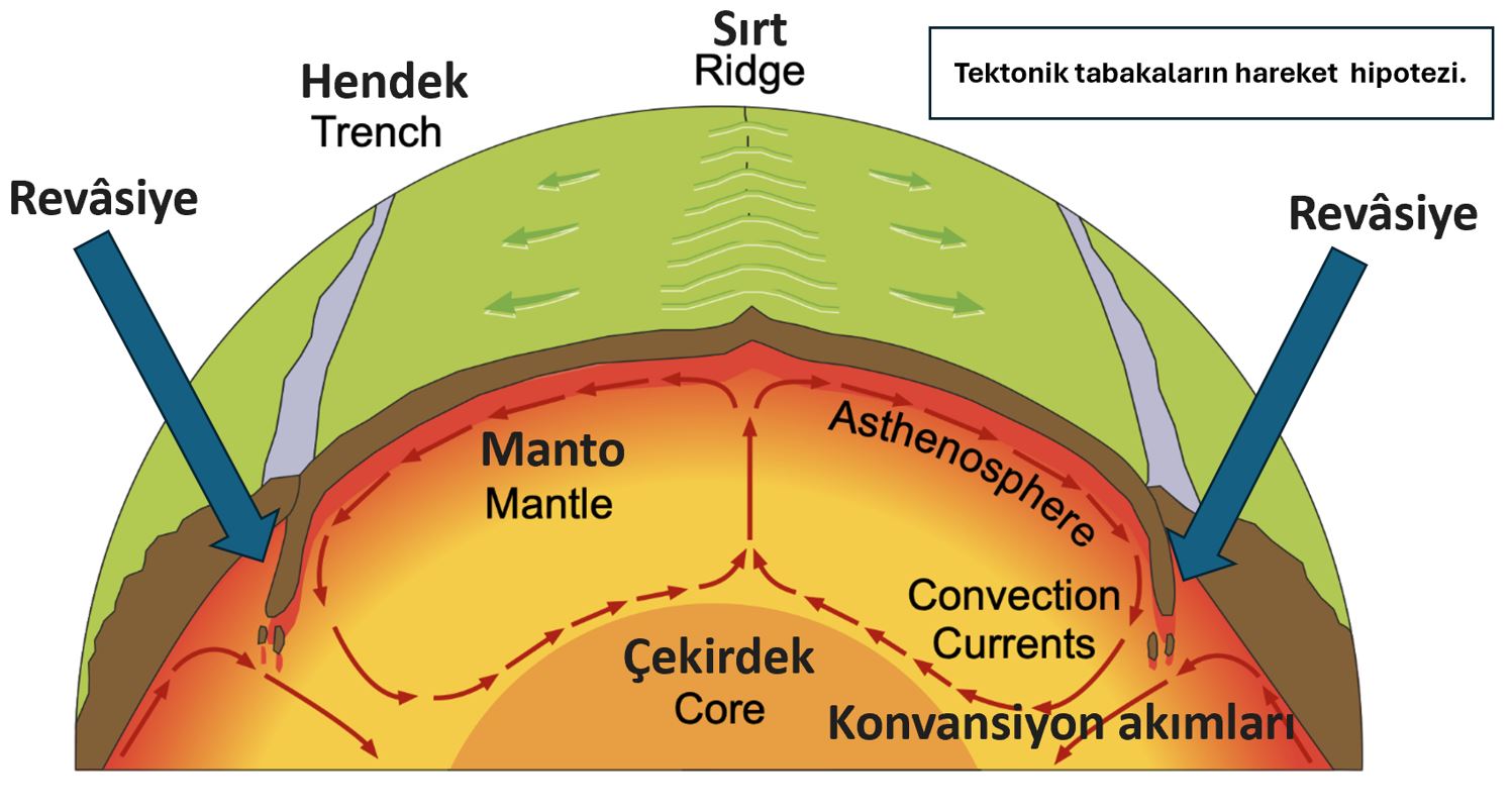 Demek ki revâsiye depremlerin nedeniymiş. Revâsiye olduğu için yerin sarsması yani depremler oluyormuş. Tektonik plakalar arasındaki yitim/batma zonlarında astenosfere kazık gibi çakılan ve plakların hareketini sabitleyen bu yapılar (revâsiye) biriken güce dayanamayıp kırılınca yerin sarsmasına yani yerin deprem oluşturmasına neden oluyormuş.
