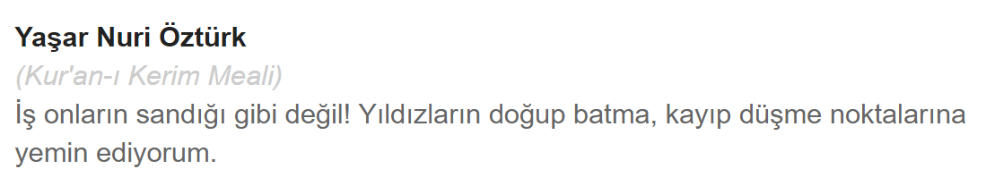 Yüce Allah 56:75 ayetinde: ‘Öyle değil! Yemin ederim düşme yerlerine-zamanlarına yıldızların’ buyurmuştur.